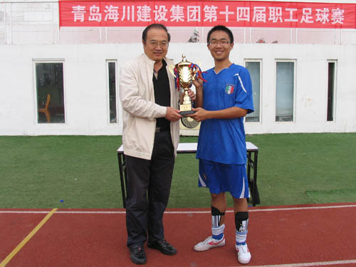 繼10月9日分組預(yù)賽之后,17日(星期天)上午,海川集團(tuán)“海川建設(shè)杯”第14屆職工足球賽在市北區(qū)中聯(lián)運(yùn)動(dòng)公園足球場(chǎng)進(jìn)行了半決賽和決賽。吳鑫董事長(zhǎng)和欒恒忠副總裁蒞臨球場(chǎng)為球員鼓勁,并在閉幕式上分別為前三名球隊(duì)頒獎(jiǎng)。決賽是在三分公司足球隊(duì)和物流分公司足球隊(duì)之間進(jìn)行的,這是一場(chǎng)精彩的進(jìn)球大戰(zhàn),最終三分公司以5:4的比分險(xiǎn)勝物流分公司隊(duì),獲得冠軍;物流分公司獲得亞軍;海川總部以4:2戰(zhàn)勝二分公司隊(duì)獲得第三名。