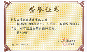 海川集團(tuán)農(nóng)業(yè)大學(xué)科技樓項(xiàng)目榮獲山東省泰山杯2017-05-31海川集團(tuán)七分公司承建的農(nóng)業(yè)大學(xué)科技樓項(xiàng)目近日榮獲山東省建筑工程質(zhì)量最高獎(jiǎng)—“泰山杯”。今年4月,山東省“泰山杯”驗(yàn)收專(zhuān)家組一行4人在市建筑業(yè)協(xié)會(huì)負(fù)責(zé)人的陪同下,對(duì)我單位申報(bào)“泰山杯”的青島農(nóng)業(yè)大學(xué)科技實(shí)驗(yàn)樓進(jìn)行了驗(yàn)收。青島農(nóng)業(yè)大學(xué)科技實(shí)驗(yàn)樓工程用于科技實(shí)驗(yàn)室和公共平臺(tái)實(shí)...