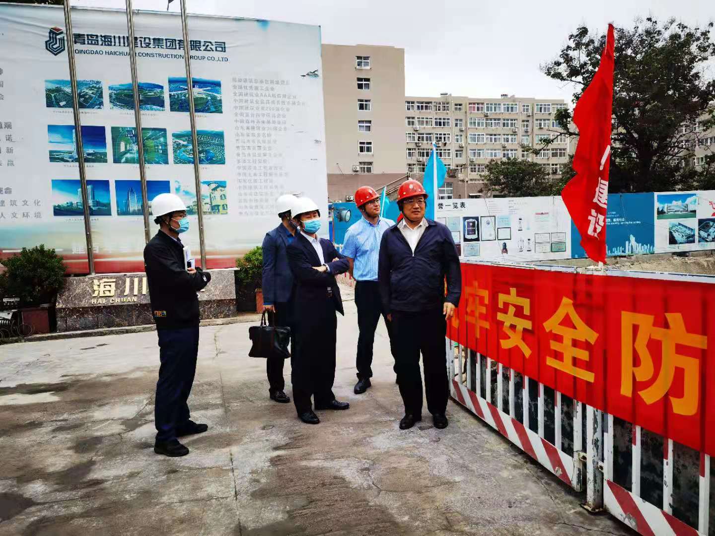 青島市市北區(qū)區(qū)委書(shū)記高健走訪青島生物科研交流中心項(xiàng)目2023-04-052023年4月5日上午,市北區(qū)區(qū)委書(shū)記高健、副區(qū)長(zhǎng)王傳勇,市北區(qū)城建局局長(zhǎng),海倫路街道書(shū)記,市北城發(fā)董事長(zhǎng),市北區(qū)應(yīng)急局,市北區(qū)消防大隊(duì)等一行領(lǐng)導(dǎo)走訪青島生物科研交流中心項(xiàng)目就安全生產(chǎn)等重點(diǎn)工作活動(dòng)建議方案進(jìn)行調(diào)研,集團(tuán)公司董事長(zhǎng)吳鑫總、總裁潘維強(qiáng)總、副總裁陳曉龍總陪同... -
