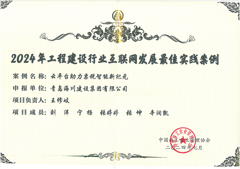 青島海川建設(shè)集團(tuán)榮獲中施企協(xié) “全國(guó)工程建設(shè)行業(yè)互聯(lián)網(wǎng)發(fā)展最佳實(shí)踐案例”2024-08-31近日,由中國(guó)施工企業(yè)管理協(xié)會(huì)主辦的中國(guó)第九屆工程建設(shè)行業(yè)互聯(lián)網(wǎng)大會(huì)在成都舉行,本次大會(huì)以“數(shù)字化賦能新質(zhì)生產(chǎn)力發(fā)展”為主題,吸引了來(lái)自全國(guó)工程建設(shè)、互聯(lián)網(wǎng)、數(shù)字化、智能化等領(lǐng)域?qū)<?、企業(yè)高管及代表超4000人參加。會(huì)上,中國(guó)施工管理企業(yè)協(xié)會(huì)發(fā)布了2024年工程建設(shè)行業(yè)互... -
