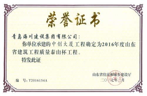 海川集團榮膺2016年度全國優(yōu)秀施工企業(yè)