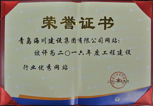 海川集團網(wǎng)站被評為2016年度工程建設(shè)行業(yè)一級優(yōu)秀網(wǎng)站