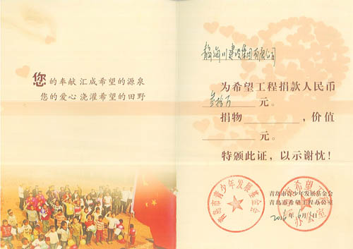 海川集團多年來一直把履行社會義務,回饋社會,報效祖國作為企業(yè)的重要職責,在企業(yè)發(fā)展的同時,不忘社會公益事業(yè),十幾年來已向社會公益事業(yè)捐款累計超過460萬元:先后向青島市教師素質(zhì)專項基金捐款30萬元,捐建貴州江口縣雙江鎮(zhèn)希望中學30萬元,捐建膠南市黃山鎮(zhèn)希望小學30萬元。并通過基金會捐助惜福鎮(zhèn)后金小學多臺電腦用于教學,2013年4月,又向惜福鎮(zhèn)“為了惜福孩子的明天”大型公益活動捐款30萬元。另外,在汶川地震期間,組織廣大職工開展賑災捐助活動,奉獻愛心,先后向市紅十字會捐款129690元,榮獲“紅十字博愛銀獎”。近年又為惜福鎮(zhèn)教育基金捐款300萬元。2014年至今,連續(xù)三次組織員工積極開展無償獻血公益活動,緩解了島城醫(yī)療機構臨床用血的緊張局面,充分體現(xiàn)了海川集團及廣大員工的社會責任感和無私奉獻精神。