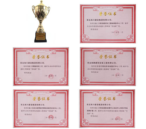 海川集團(tuán)所獲5項(xiàng)“青島杯”分別是:青島新河化工基地商務(wù)中心工程(一分公司施工);山東路商業(yè)住宅工程(一分公司施工);青島市??漆t(yī)療中心工程(三分公司施工);2014世界園藝博覽會(huì)愿意文化中心工程(四分公司施工);青島國(guó)際會(huì)展中心會(huì)議中心項(xiàng)目3號(hào)館南側(cè)擴(kuò)建工程(六分公司施工)。