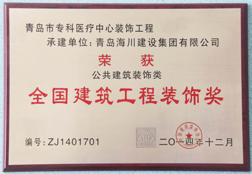 ??漆t(yī)療中心工程捧回全國(guó)建筑工程裝飾獎(jiǎng)